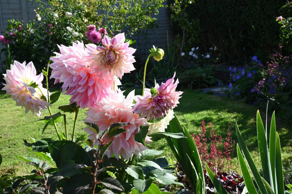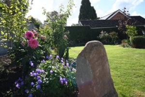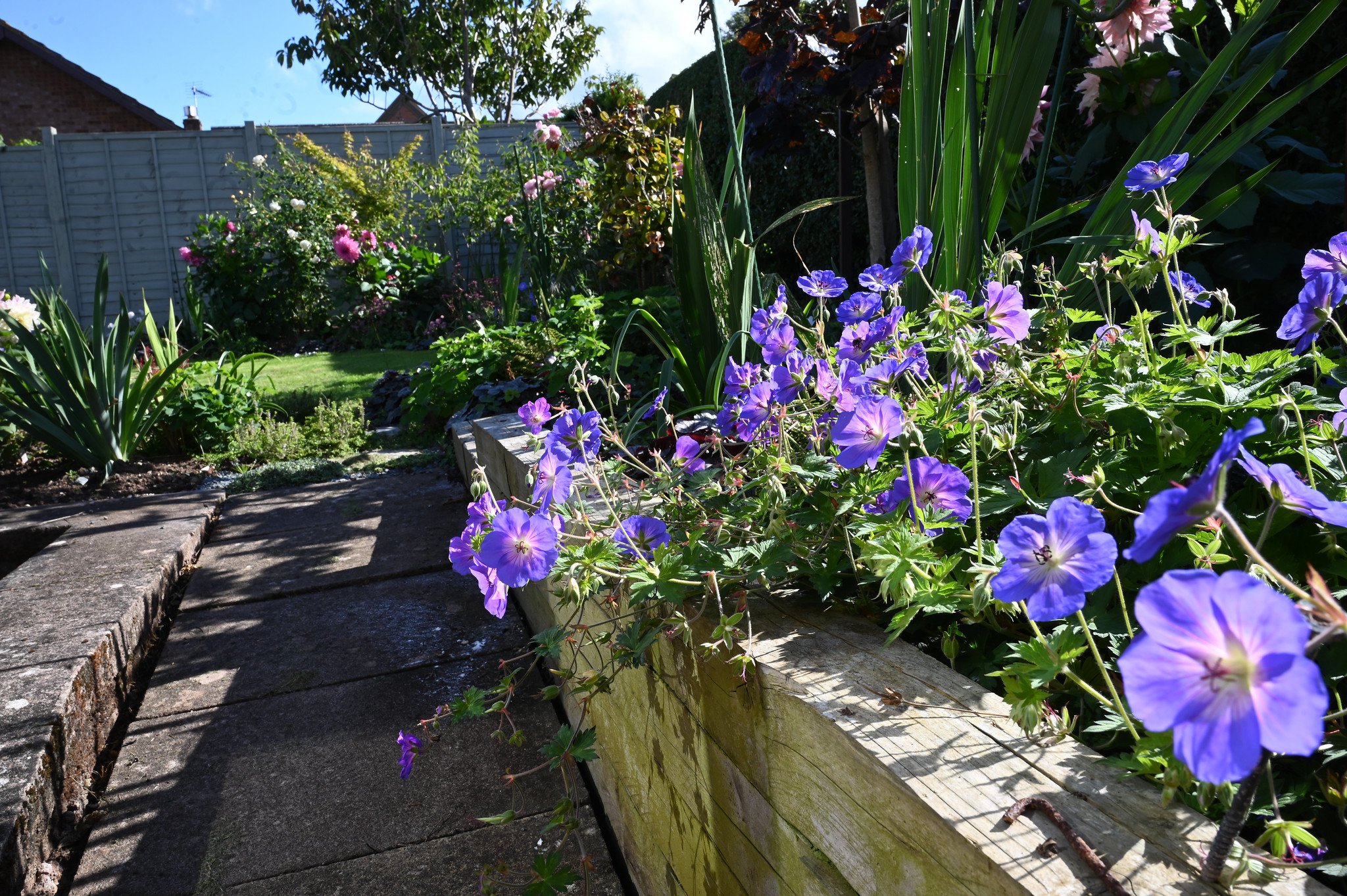 Planted in 2025, the garden truly comes alive in summer. In July, drifts of Astrantia, blue Geraniums, and Heucheras are joined by waving Anemones, creamy white Gladioli, and glorious roses, creating a rich tapestry of colour and texture.