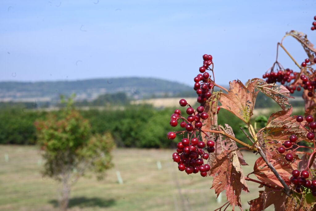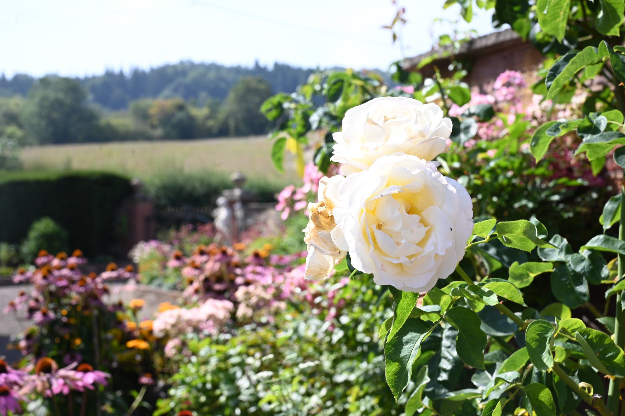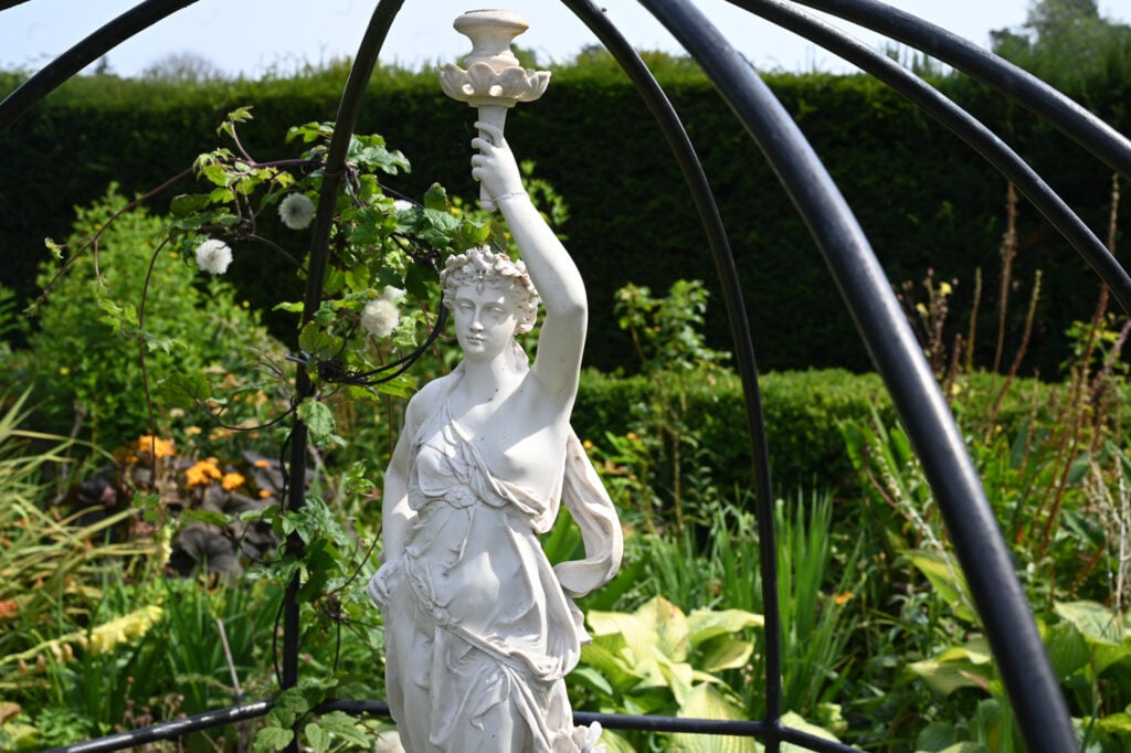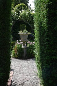 The experience is completed by the striking cornus avenues with an obelisk and a willow bower, bringing together traditional planting, thoughtful design, and a peaceful rural setting.
