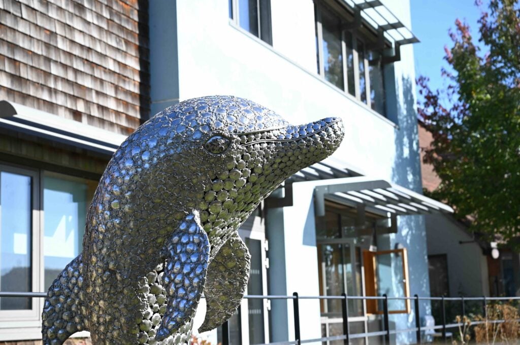 Our pond has a striking new addition thanks to the donation of this life-sized dolphin.