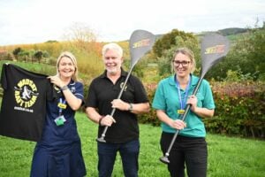 Handing over the money were MadSat members Nick Wood, Karen Rees and Sophie Boyd. Karen and Sophie both work in our clinical teams here at St Michael’s.